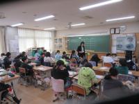 吉川で400年続く料亭「福寿家」さんを講師にお招きし、3年生が昔の吉川の様子や川魚料理、なまずなどの地域学習を行いました。子供たちは、昔の吉川の様子を聞くと、今との違いにとても驚いていました。写真で説明してくださったので、分かりやすかったです。また、吉川で川魚料理が盛んな理由やナマズの生態についても教えていただきました。最後には本物のナマズに触れ合う機会もいただき、子供たちは大喜びでした。大きなナマズの迫力に圧倒されながらも、「かわいい」と撫でる様子が多くみられました。食事を通して命をもらっている私たち。いつでも感謝の気持ちを忘れないようにしたいですね。ご多用の中、説明してくださった福寿家さん、本当にありがとうございました。