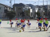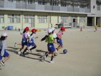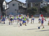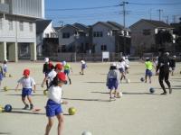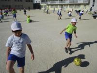 12月10日(水)、JFAキッズプログラムがありました。日本サッカー協会(JFA)インストラクターの方の説明を聞いたあと、手を使ったボールの操作を足でやってみたり、おにごっこやゲームをしたりしました。