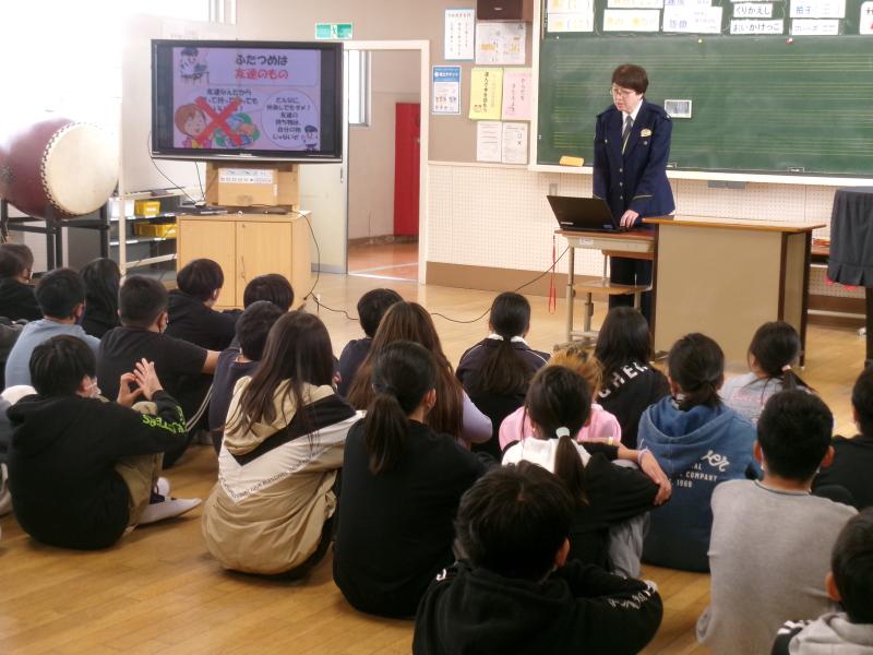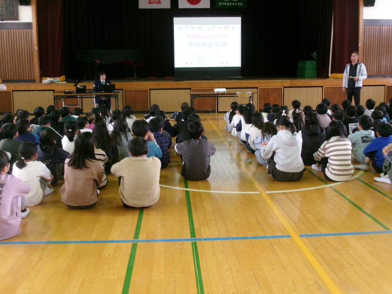 4・5年生は体育館にて非行化防止教室がありました。ルール、決まりを守って生活することの大切さを学びま