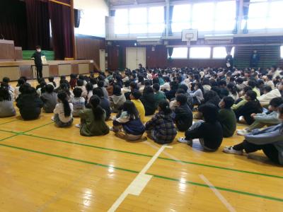 1月23日(金)の午前中、体育館で入学説明会がありました。準備していただくお願いをいたし