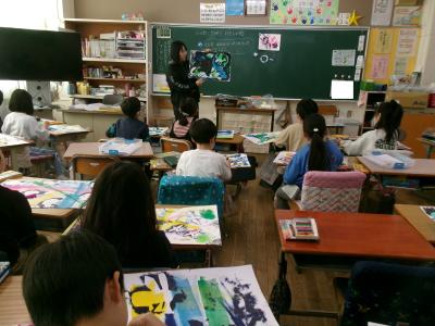 ているところを先生が説明していました。子供たちは、自分の作品と見比べて、工夫できるところ