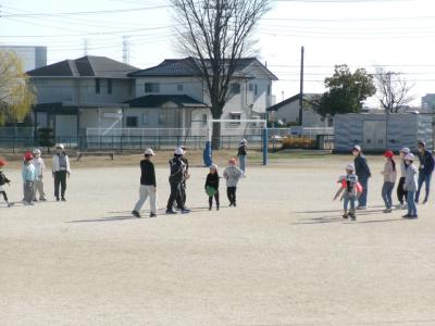 1年生とボール遊びをしていました。1年生が楽しく遊べるよう6年生は内容もよく考えられていま