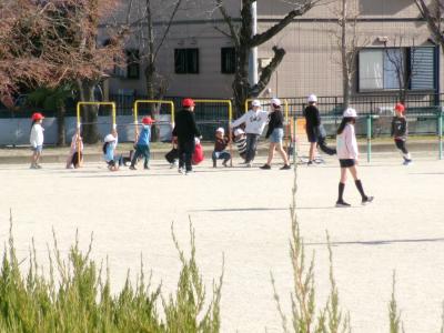 校庭で元気よく遊びました。1年生はもちろん、6年生も楽しい時間でした。