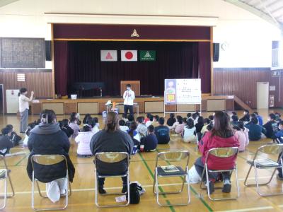 4・5年生は体育館にて非行化防止教室がありました。ルール、決まりを守って生活することの大切さを学びま
