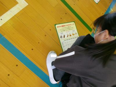 今日は体育館でおなか元気教室がありました。参加したのは3年生です。希望された3年生の保護者の方も参加し