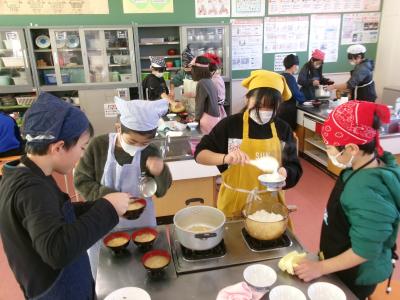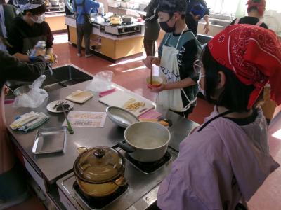 た。班で仕事を分担し、交代して調理するなど協力しながら楽しく調理していました。よい雰囲気でした。教師分