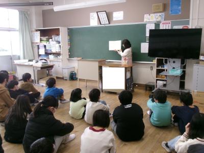 今日の朝の活動は、読み聞かせがありました。お話を聞いたのは、2年生と5年生です。おはなし