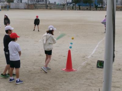 今日の1時間目、校庭から元気な声が聞こえてきました。見に行くと、4年生が体育の授業をして