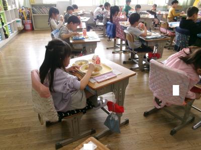 ろなことができるようになった2年生。給食初日でしたが、担任の先生の支援の下、整然と準備を