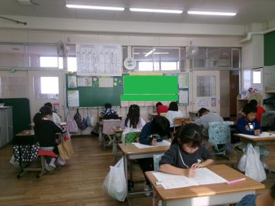 でテストをしていたのでこの2時間はとても静かでした。1年生は初めて本のようにページをめくるテストに挑戦し