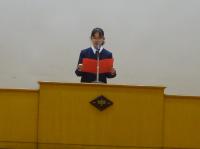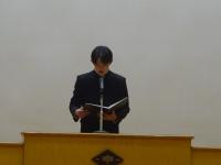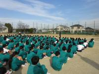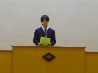 校歌斉唱の後、生徒代表の話、表彰、冬休みの生活についての話、安全についての話を行いました。
