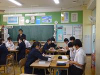 今日の5時間目に、3年生のクラスの英語の授業研究会が行われました。