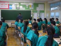 風邪などが流行っているため、体育館ではなく、各クラスへのリモートで行いました。