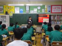 花王株式会社様、コーワプラス株式会社様、吉川ムサシノ幼稚園様、和菓子司まるしん様をお迎えし、各クラスで学習会をしていただきました。仕事内容、1日の動き、働くことの心構え、郷土のよさなどについてお話しいただき、実験、和菓子作り、こどもへの声掛けなどの体験活動を行いました。その後講師の方へ様々質問し、最後にお礼の言葉を伝えました。