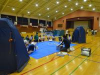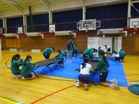 段ボールベッドの組み立て、簡易トイレの組み立て、救急担架・搬送方法訓練、ワンタッチパーテーション組み立てを行いました。実際にやってみることで、どんな事なのか、どういうものなのかがよく分かります。