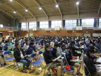 6時間目に体育館にて、3年生と保護者の方に参加していただき「進路セミナー」をおこないました。進路指導主事の先生が中心となり、埼玉県・千葉県・東京都の高校入試について、および私立高校の受験の仕方について、具体的な資料を活用しながら丁寧に説明しました。生徒の隣に座った保護者の方も真剣に最後まで聞いていただきました。