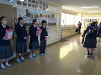 新生徒会役員の取組として、朝、あいさつ運動とともに募金活動をおこないました。生徒会の生徒は大きな声で呼びかけをしてくれました。先輩から受け継いでいる募金箱とともに3日間活動しました。最終日の12日は職員室にも来てくれて、多くの募金が集まりました。