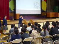 1,2時間目を活用し、助産師の方をお呼びして3年生を対象に性教育講演会を行いました。「命の授業~おとなになる君たちへ~」というタイトルで命の大切さ、妊娠、性感染症等についてわかりやすく丁寧に講演をいただきました。生徒たちは真剣に話を聞き、これから大人になる自分の糧としてとらえているように感じました。少数ですが、希望する保護者の方にも来校いただき、講演を聞いていただきました。卒業式が近づいている3年生、さすがの授業態度でした。