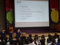 どの学年も時間をかけて練習を重ねてきた学年合唱。その成果が十分に発揮されたすばらしい発表会となりました。その他にも文化部(家庭科部・情報文化部)発明創意工夫展に出品した作品の展示もあり、休憩時間では生徒たちが悔いるように参観していたのが印象的でした。吹奏楽部、各スピーチコンクール出場生徒の発表、そしてステージを埋めた美術部の壁画も素晴らしい出来でした。