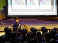 5時間目に授業を公開を行い、保護者の方に授業を見てもらった1年生の保護者会。多目的室には70名近くの保護者が集まりました。最初は学級委員によるクラスの様子の発表です。堂々と話している様子が伺えました。学年主任をはじめ、各先生方からは成長を感じられた場面とともに冬休みを迎えるにあたって家庭にお願いしたいことなど学習面、生活面から話をさせていただきました。