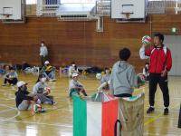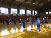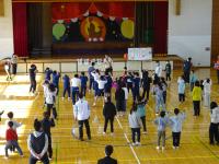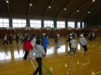 2時間目と3時間目に関小学校と栄小学校の児童が各クラスごとに来校し、体育館で保健体育の体験授業を受けました。児童は栄小・関小関係なく分類されたグループを作り、縄跳びやボール運動で親交を深めました。最初は緊張していた児童たちも中学校の保健体育の先生とともに楽しく運動することで打ち解けている様子が見られました。