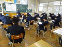 テスト後は竜巻を想定した避難訓練が行われました。実際に皆さんの学習机を使用したシェルターをつくって訓練を行いました。竜巻は遠い土地でのことではなく、とても身近で怖い災害です。今回の訓練を忘れずにしましょう。