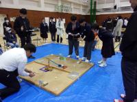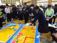 先日の「ロボットチャンピオンシップ」に引き続き、今日は「創造アイディアロボットコンテスト」に東中生の皆さんが参加しました。前回とは内容の違う課題となっていて、今日は「スポンジでできた筒を、用意された台に積み上げていく」というものでした。班のメンバーで作ったロボットを操り、みんなで声を掛け合いながら難しいミッションに取り組んでいました。練習期間が短かったと思いますが、皆さんよく頑張りました!