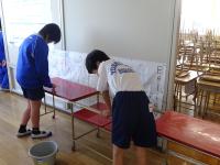 放課後は、環境委員が各階の廊下のワックスがけをしてくれました。おかげさまで廊下がピカピカになりました!