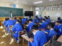 今日は3年生の音楽の内容を紹介します。「きらきら星」のメロディーを、自分の考えた景色や場面に合わせてアレンジや曲の構成等を工夫し曲の完成を目指す授業でした。それぞれ自分が工夫したところを説明した後、クロームブックのアプリを使用して創作した曲を班の中で発表していました。その後、友達の意見等を参考にしながら創作した曲をその場で手を加えることによって、曲がどんどん変化していきました。創作ソフトを使っているので、楽器やリズムの変更等がすぐにできて学習がスムーズに進んでいきました。音や楽器をちょっと変えることによって、曲調が変化していきました。素敵な曲が完成していきました!