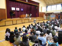 12月18日に校内スピーチを行いました。校内スピーチでは、6年生が外国語の授業で学習している内容を、校内放送を使って英語で伝えることを行いました。代表の子供たちはマイクに向かうと緊張した様子ですが、放送が始まると、はきはきと上手に英語で伝えることができました。6年生は残り約4か月で中学生になります。学習したことを中学生で生かすことができるように学習に取り組んでいくことができるとよいですね。