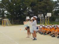 10月3日(金)に陸上大会壮行会を行いました。壮行会では、60m走ハードル、100m走、ボール投げ、走り高跳び、なわとびの選手が練習してきたことを発表しました。1年生から5年生が見守る中、それぞれの種目で選手が一生懸命頑張っていました。最後に、栄小学校の代表として出場する6年生に寄せ書きが渡され、温かい雰囲気の中で壮行会が終わりました。下級生の思いを受け継いで、10月7日(火)の陸上大会で力を出し切れるように頑張ってほしいと思います。