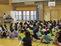 生徒指導主任の先生からは、「健康な生活のために早寝・早起き・運動と自分から進んで行動すること」と「安全な生活のために自分の安全のために防犯ブザーを持つことや水難事故に気を付けること」などについて、夏休みを安全に楽しく過ごすための約束を確認してもらいました。