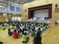 子供たちは、全校朝会も授業や学習として考えているので、子供たちは聞いたことを伝える活動に取り組んでいました。お話をどれだけ聞けていたか・聞いてどのように考えたかなどを友達と話合ったり、先生からのクイズに答えてみたりと全校朝会のふりかえりをしていました。しっかりした態度で聞けていたので、たくさん答えられた・伝えられたことでしょう。