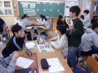 12月16日(火)、栄養士さんによる栄養指導がありました。一食分の食事を考える班ごとの活動では、季節、旬、彩り、栄養バランスと、様々なことを気にしながら話し合って献立を考えました。