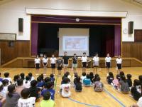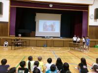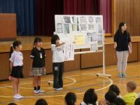 9月16日(火)、児童集会を行いました。給食委員会と図書委員会が発表を行いました。クイズ形式で普段の活動や全校へのお願いをわかりやすく発表していました。