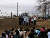 市長、教育長やアスレチック設置に携わった多くの方、また、アスレチックのアイデアを小学6年生の時に発案した現中学2年生の生徒さんも参加され、盛大に行われました。