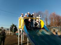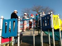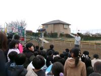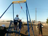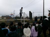 1月7日(水)の3時間目に、旭小学校に新設されたアスレチックのお披露目会が行われました。