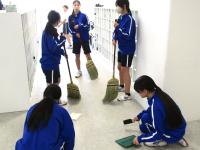 3時間目に全学級一斉に大掃除を行いました。1、2時間目にクリスマス会等のレクをやっていた余韻を残しながらも、生徒たちは2学期の間にたまった汚れをしっかりと落としていました。普段やっている掃除も、「大掃除」となると一大イベントの感じがあり、いつもより生き生きとした表情で掃除をしているように見受けられました。