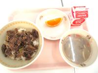 本日の給食は、年に1回くらいしか出てこないという噂の「牛丼」でした。