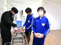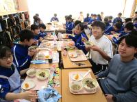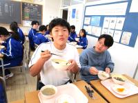 教職員も生徒たちも美味しくいただきました。廊下にはおかわり(追加増量)を求める列ができていて、まるで行列ができる名店のような雰囲気でした。牛丼の人気の高さを感じさせる光景でした。