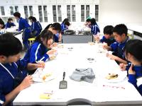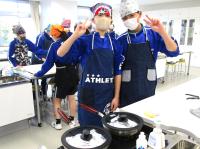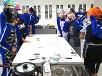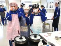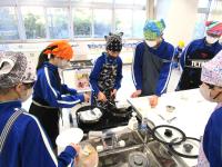 2年生の家庭科、調理実習の様子です。本日のメニューは「鮭のホイル蒸し焼き」でした。適切な大きさに切った玉ねぎ・ミニトマト・えのきを、鮭とともにホイルに包み、適切な火加減で調理していました。