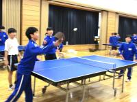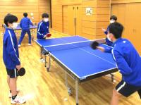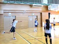 1年生の体育では、女子がバレーボール、男子が卓球に取り組んでいました。それぞれの種目の経験者もそうでない人も、声を掛け合いゲームを楽しんでいました。