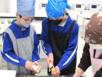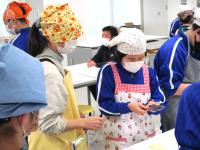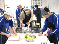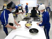 昨日に続き、本日も2年生の調理実習にお邪魔しました。今日は、調理の初めから最後までの様子を見学させてもらいました。生徒の中には慣れた手つきで玉ねぎを刻む子もいれば、包丁を持つ手がおぼつかない子もいましたが、班員同士でフォローし合いながら、みんな楽しそうに調理を進めていました。