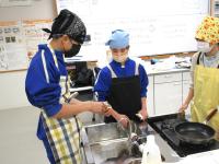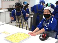 9組の調理実習では、みんなで協力してフライドポテトを作っていました。使用したジャガイモは9組が畑で丹精を込めて育て、収穫したものです。自分たちで育てた野菜を自分たちで調理して食べる。とても貴重な経験になったことと思います。美味しく仕上がったポテトフライは、職員にも大好評でした。
