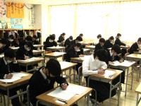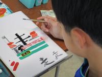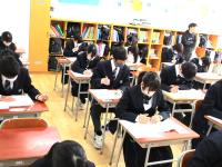 教室では、2年生が実力テストに取り組んでいました。1年生の美術の時間は、漢字のレタリングと絵を融合した作品づくりに取り組んでいました。楽しく、思いの込められた作品が出来上がりそうです。