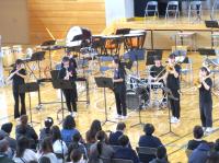 卒業式でも立派な演奏を聴かせてくれた「威風堂々」をはじめ、JAZZのスタンダードナンバー、各アンサンブル、「ユーミンメドレー」、“大人”たちの演奏による「ムーンライト伝説」、卒業生も参加して楽しく踊る「マツケンサンバ」等々、音楽の楽しさを再確認させてもらえるとっても素敵な時間となりました。吹奏楽部のみなさん、感動しました。すばらしい演奏をありがとうございました!