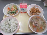 振替休業日の10日(月)の給食は、吉川ねぎと大根のカレーだそうです。