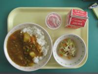 今日の給食は、みんな大好きカレーライスでした。1年生も補食ではなく、カレーライスを食べました。1年生からは、「おうちのカレーも、幼稚園のカレーも、小学校のカレーもみんなおいしい。カレーライス大好き。」という声がでました。たくさん食べて、元気に過ごしてほしいです。