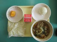 今日の給食のメニューは、ながさきちゃんぽん、コロコロ大根、はるまき、牛乳でした。
