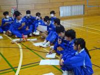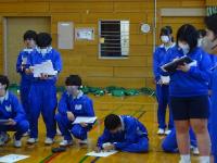 二年生の体育は、女子は「卓球」、男子は「バドミントン」を学習しています。男子は最初に、競技準備についての説明がありました。体育館全面に各班ごとに移動してネットのポールを立てた後、ネットの貼り方を先生が説明し始めるとすぐに静かになり、話を聞く雰囲気が自然と生まれました。素敵な瞬間でした。